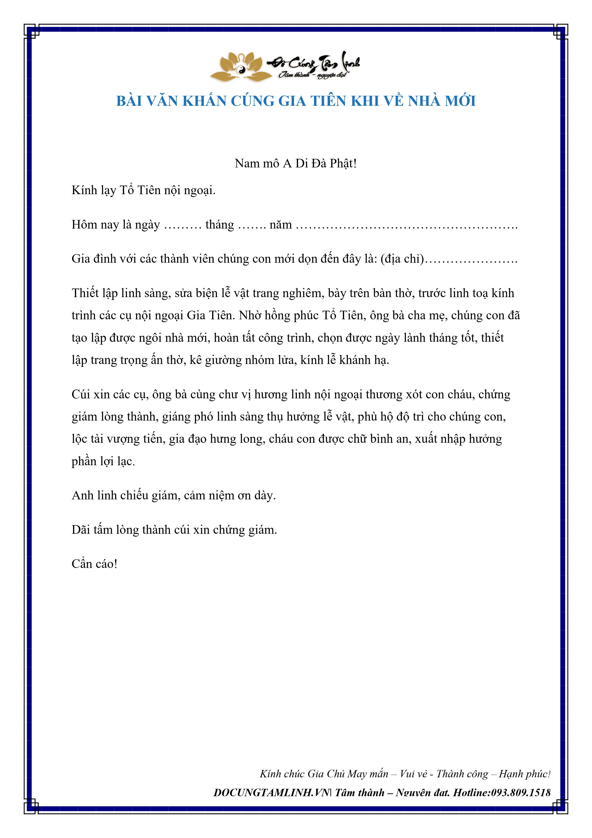 Bài Văn Khấn Cúng Gia Tiên Khi Về Nhà Mới