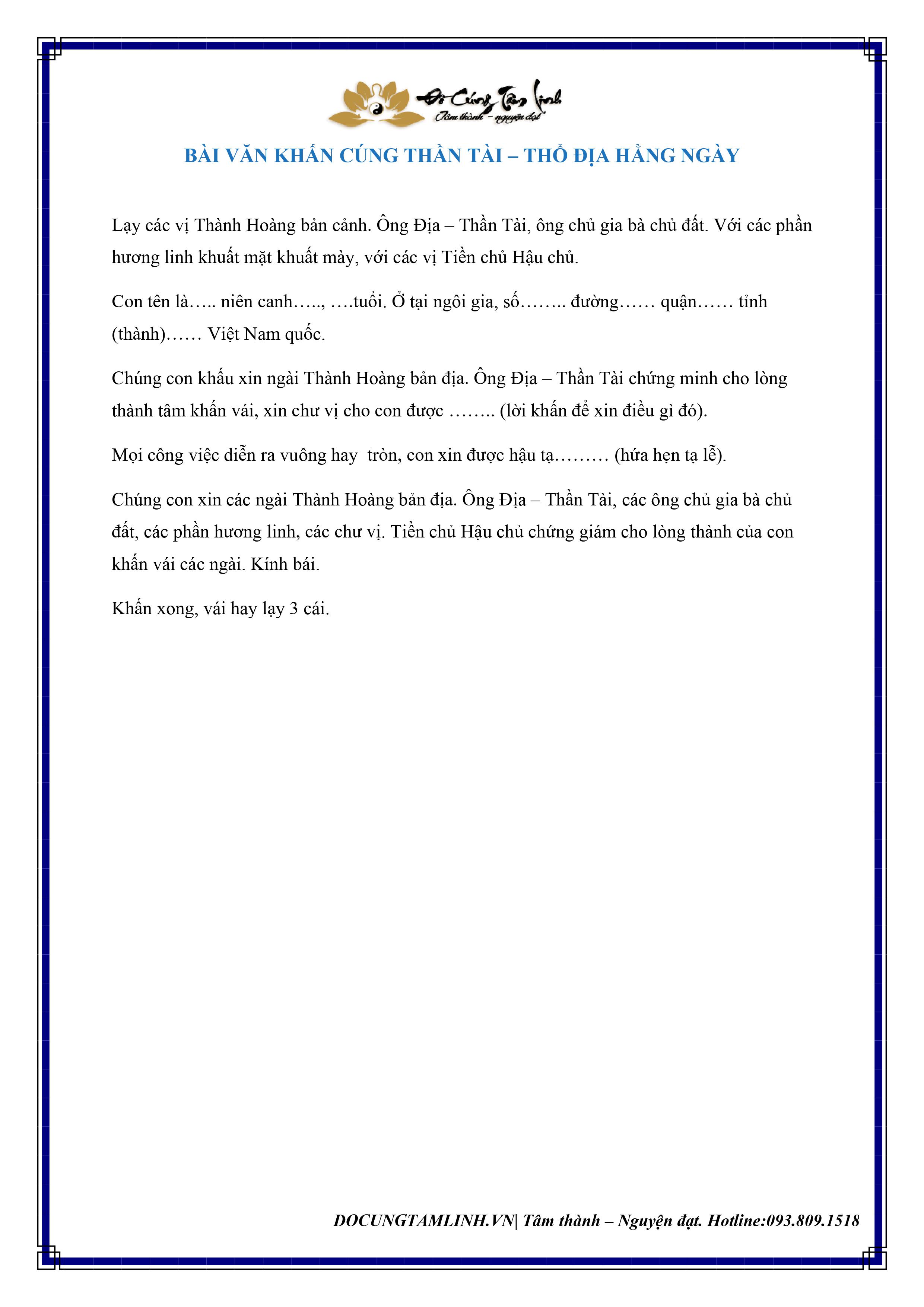 Bài Văn Khấn Cúng Thần Tài - Thổ Địa Hằng Ngày