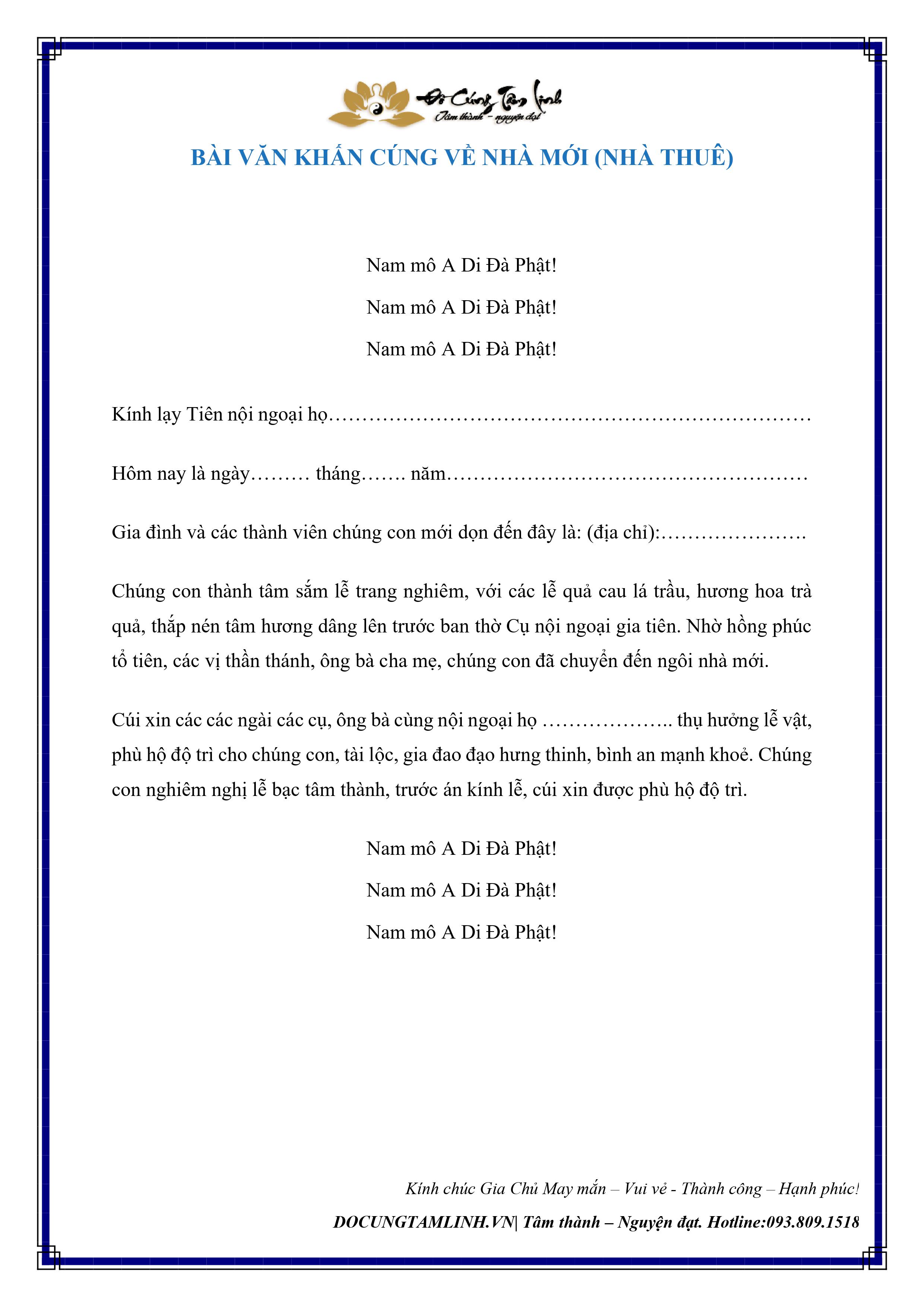 Bài Văn Khấn Cúng Về Nhà Mới (Nhà Thuê)