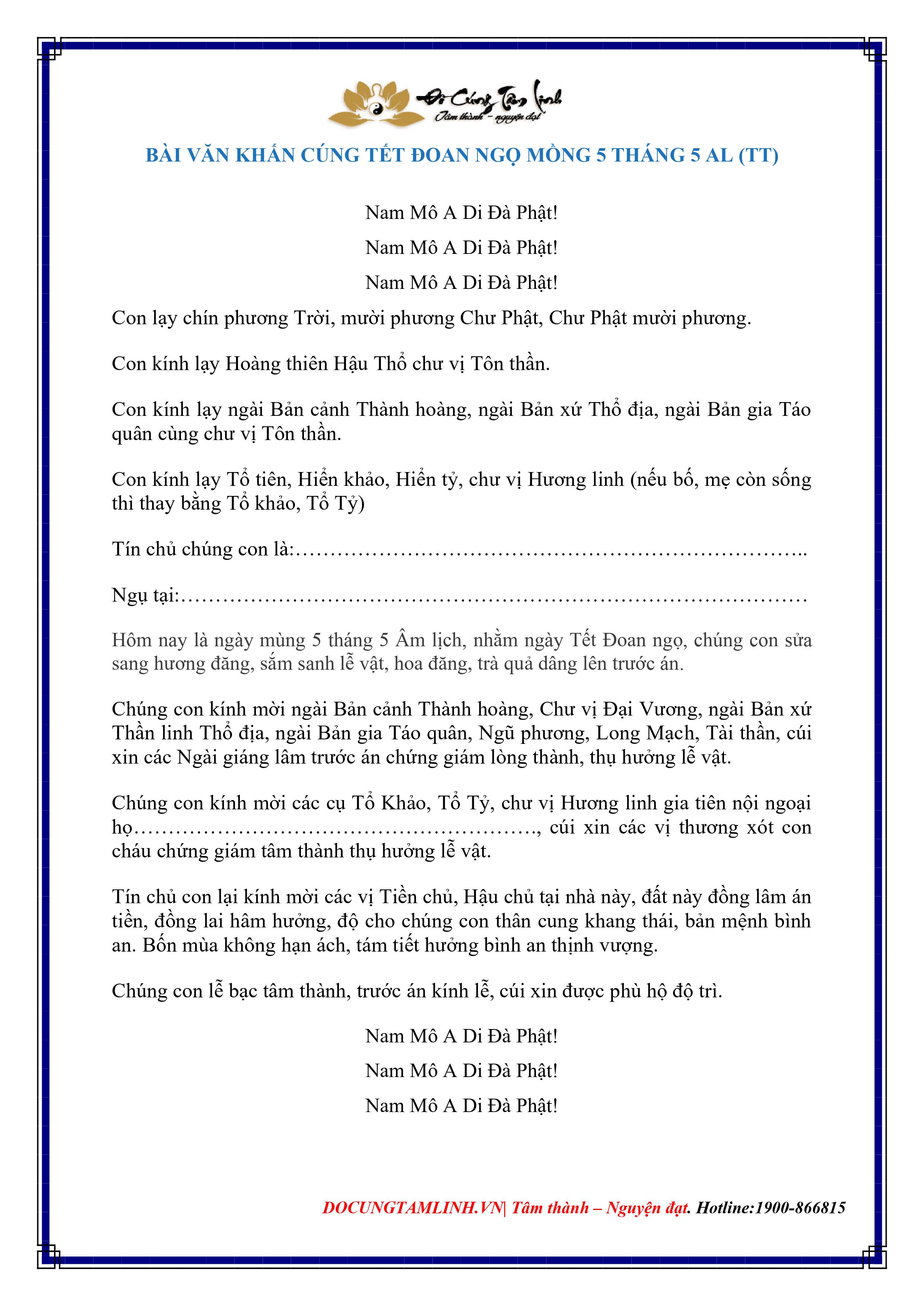 Văn Khấn tết Đoan Ngọ Thông Dụng