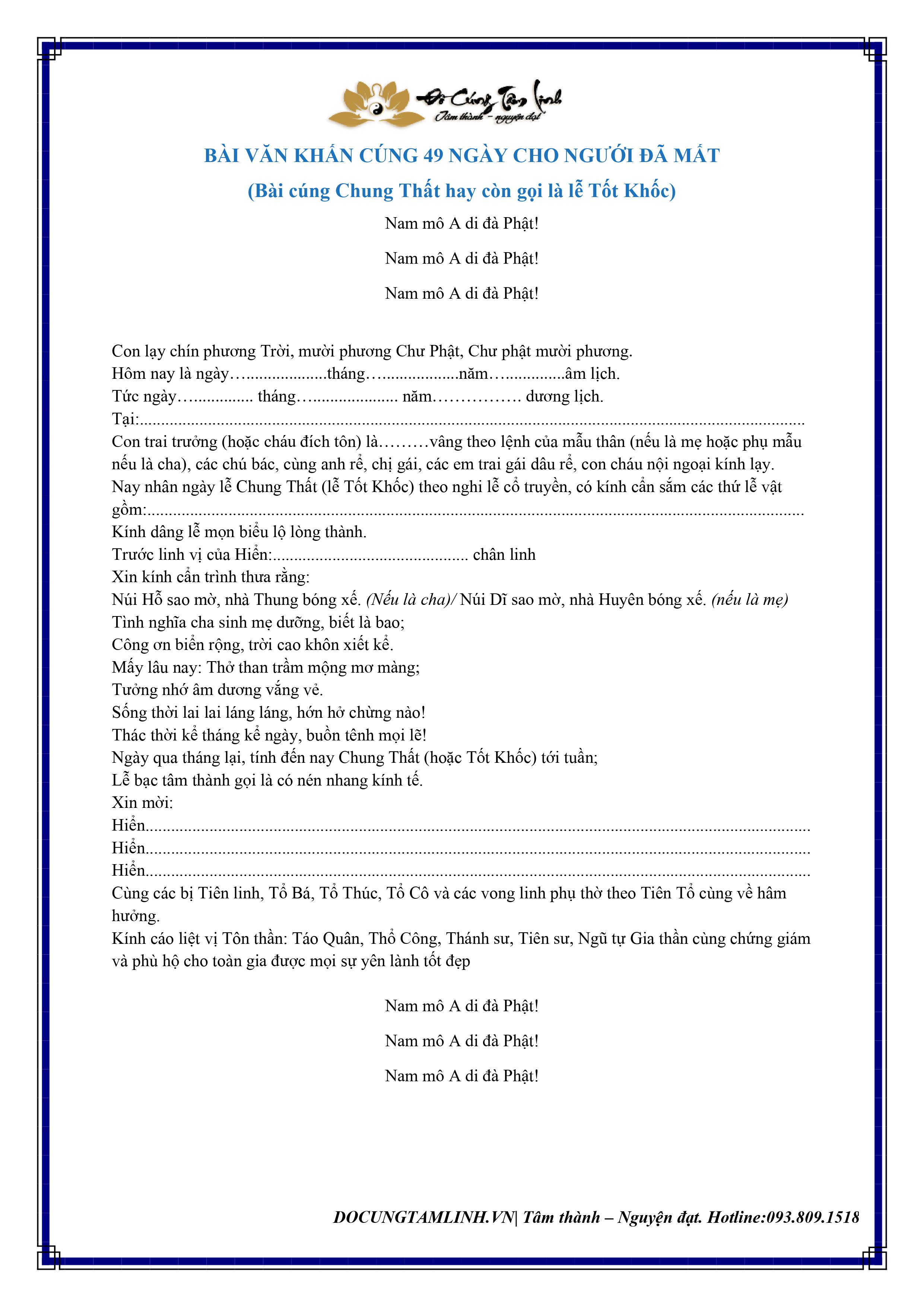 Văn Khấn Cúng 49 Ngày Cho Người Đã Mất